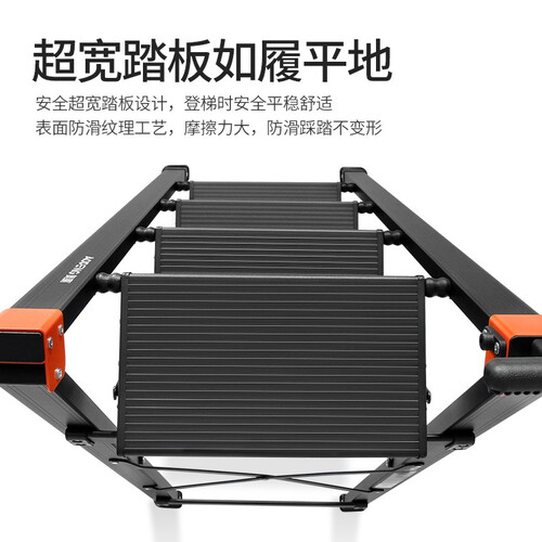 采用超宽踏板设计,使用面积大更加平稳,防滑纹理设计更加安全,采用铝合金材质制作,轻便易用承重能力更加强。