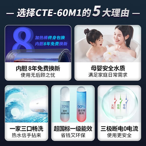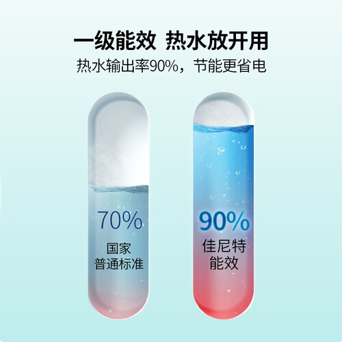 热水器具有一级能效,有效节省电力,让你可以放心使用。使用高温洁净技术,有效去除有害生物,保护你的健康。