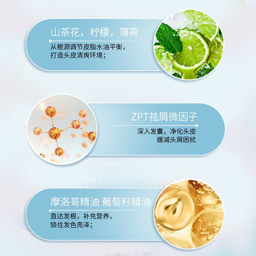配方中含有去屑因子,有助于深入毛囊,净化头皮的头屑,自信走路不掉线。天然植物精油,为发根补充营养。