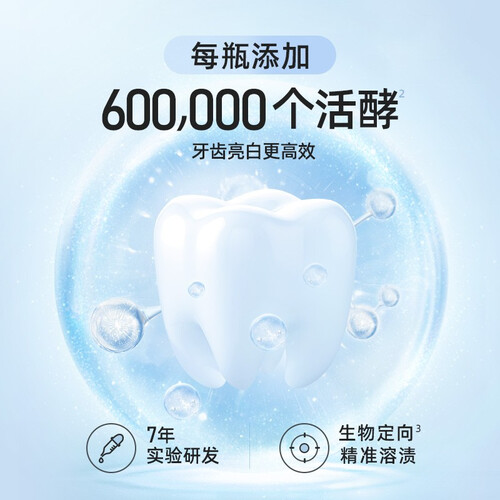 蕴含微胶囊活酵素,活酵素一刷释放,深入包裹牙齿轻松亮白,准确狙击牙渍;配合净白粒子,形成长效保护膜,防止色素再次附着。
