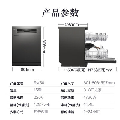 承载量良好,容量大,可堆放的碗具多;高温杀菌,碗具清洁到位;热风烘干,干净又卫生。