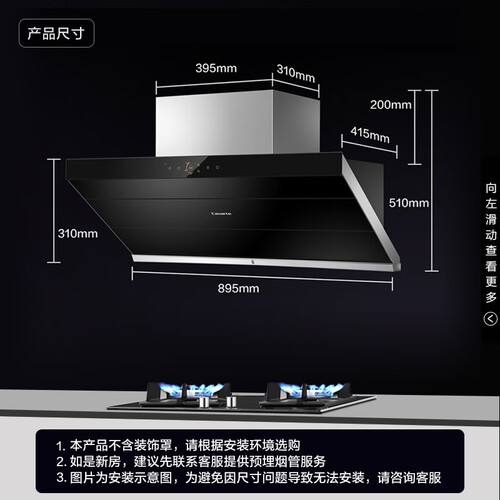 搭载了直驱变频电机,大风吸力的功率,畅排油烟不逃逸,有着强劲的抽烟效果。搭载的智能芯片,可以自动感知并调节风压。