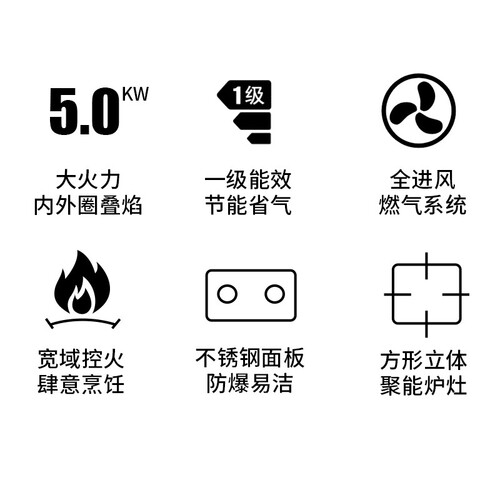 采用全进风系统,实现充分的燃烧效果,使用省气更环保。方形立体聚能炉灶加持,有效降低能量损耗,加热效果更好。