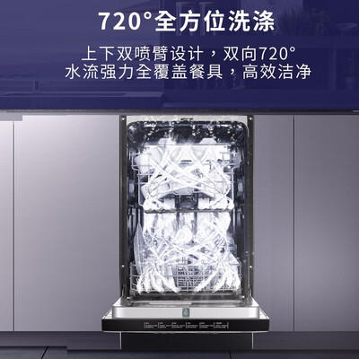 这款洗碗机采用立体喷淋技术打造,深层清洁顽固油渍,洁净无残留。符合人性化设计,无需弯腰取碗筷,使用方便便捷。