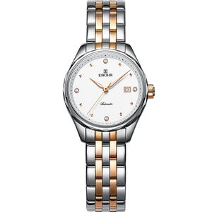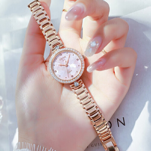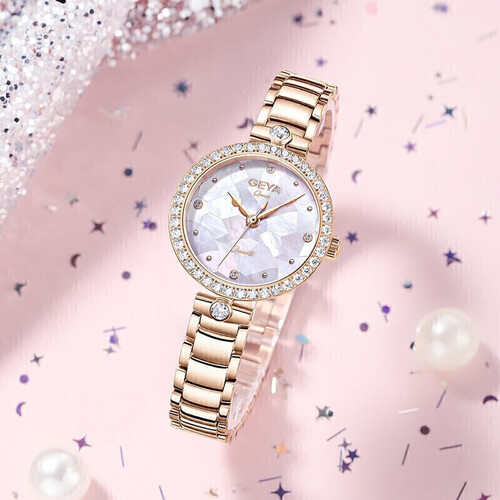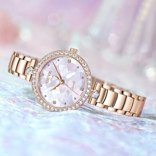 多彩贝母拼接处理的表盘,承着优雅的时尚风潮,演绎着浪漫的淑女风格调。镶钻表圈的融入,更显轻奢时尚的名媛风。