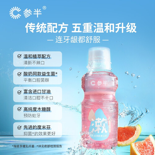 拥有萌趣十足的瓶身设计,符合人体工学设计,更方便拿握。零酒精添加,在漱口的过程中不会酸涩不适,升级使用感。