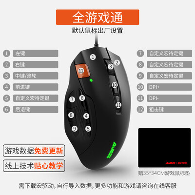 这款鼠标配备了12个按键,玩家可以根据自己需要自定义按键功能,畅快玩转各大游戏。