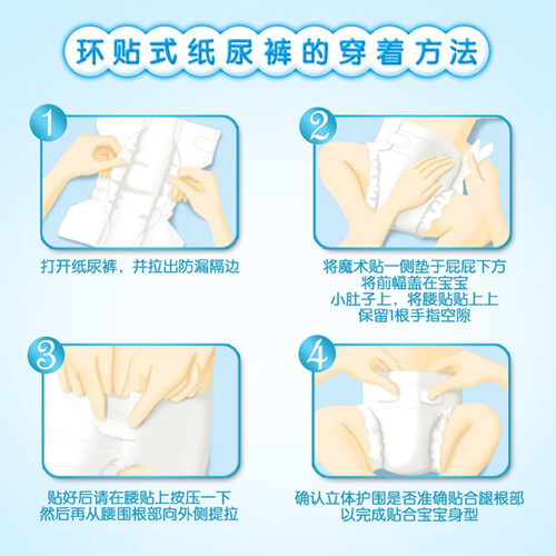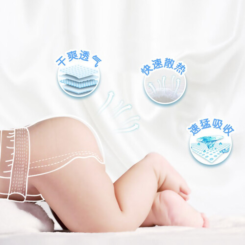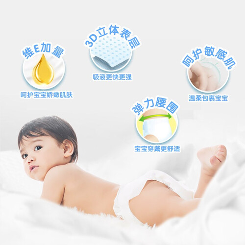 表面中添加丰富维他命E成分,柔软亲肤同时可温柔呵护娇嫩PP肌肤。环抱式腰围,紧密贴合舒适不紧绷。