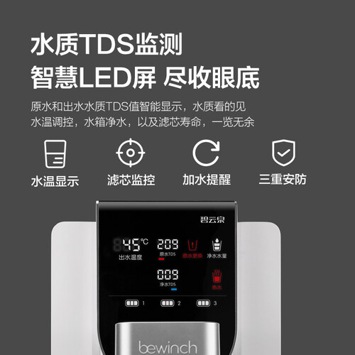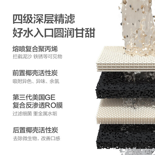 净化速热一体,免安装设计,使用方便。采用美国GE航空级RO滤材,有效去除水中重金属和微生物,出水放心喝。