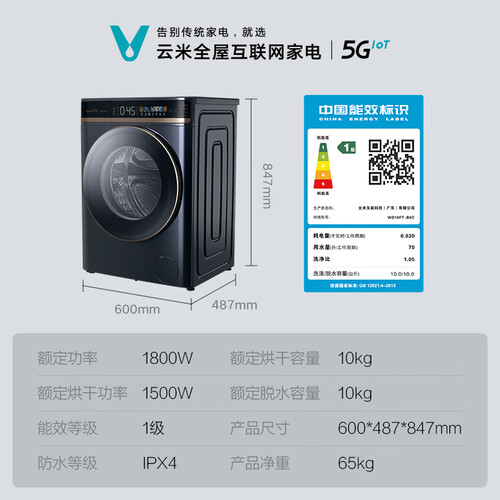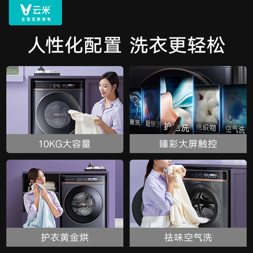 AI双投放系统,能精准的投放洗涤剂和柔顺剂,避免残留和浪费。10kg洗涤容量,一次就能清洗全家人的衣物,节能省时。