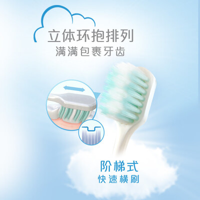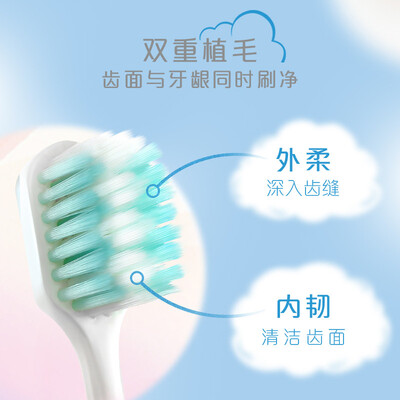 如棉花糖般的材质,质地更加柔软,不会对牙齿造成损伤。搭配双重植毛设计,多角度进行清洁口腔,实现无死角洁净体验。