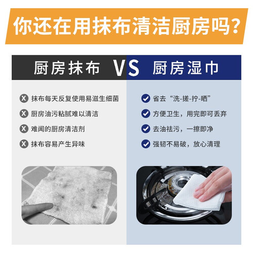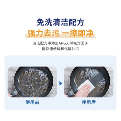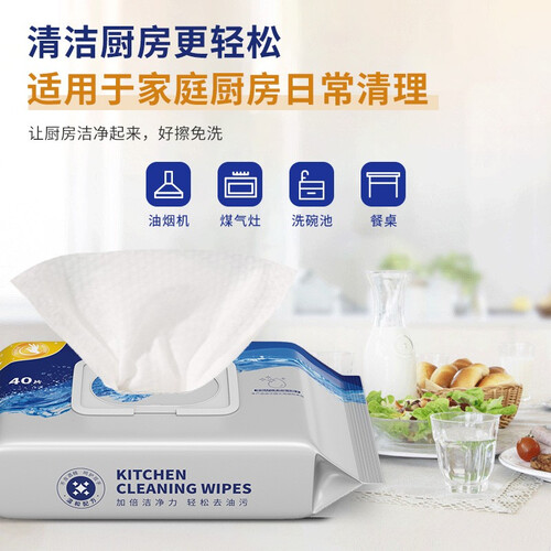 湿巾的配方较为温和,不伤手也不会腐蚀厨具。湿巾加大处理,与桌面接触面大,去污更轻松。采用珍珠压纹设计,吸附力更强。