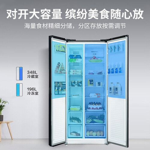 548L的大容量设计,内部空间合理划分,有效增加了存储空间。内置LED灯光,方便拿取食物,使用更贴心。