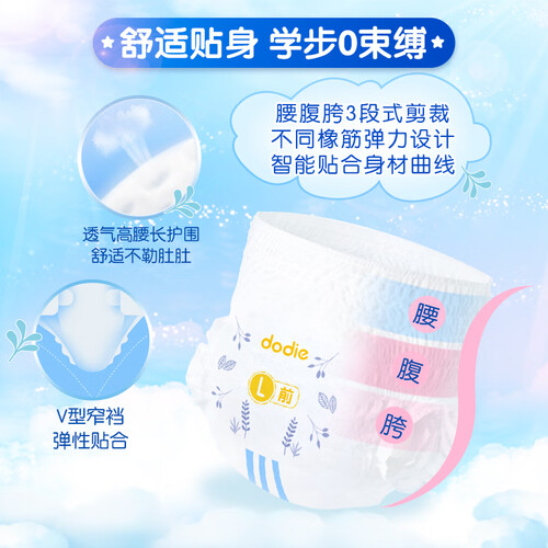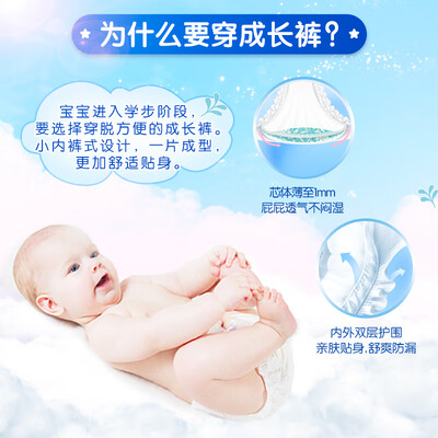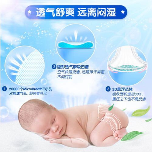 内部含有隐形瞬吸通道,可以加速空气流通,让小屁股干爽舒适。采用弧形贴身剪裁,轻薄质地减少负担,给予宝宝裸感体验。