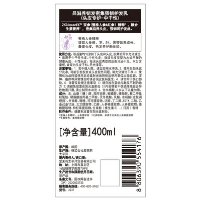 添加整株人参成分,带来更好的养护效果,改善发质干枯的情况。含有生姜营养成分,可以舒缓头皮,有效减少掉发。