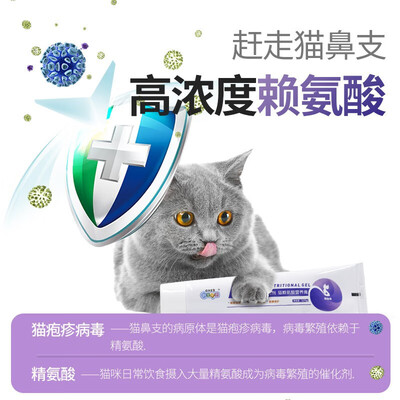 添加高浓度赖氨酸,有助于提高猫咪抵抗能力,预防猫鼻支疾病的发生。含有牛磺酸,保护爱宠视网膜健康。