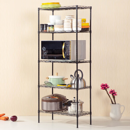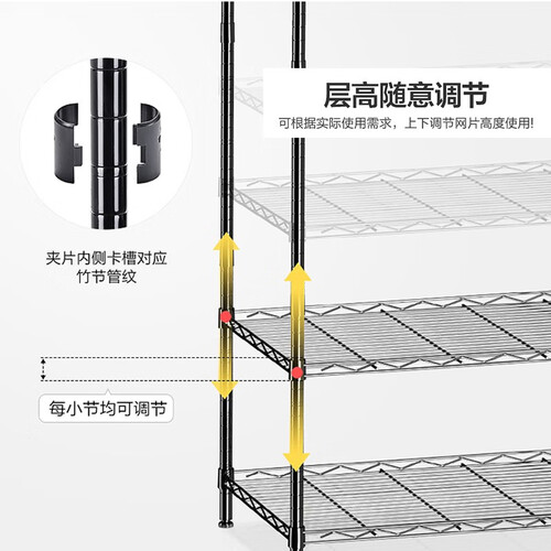 十字经线处精湛的焊接工艺,加以波浪形三角力学设计,兼顾美学的同时更加稳固。自然的竹节管,优质的碳钢,五层置物架平地而起。