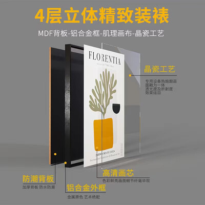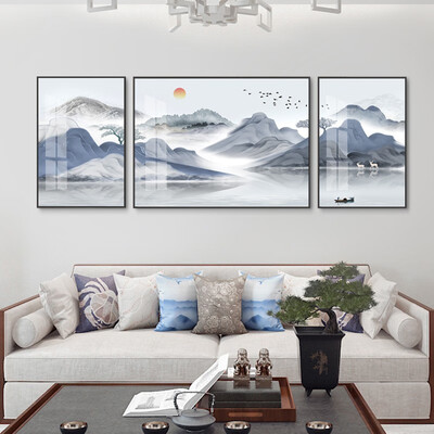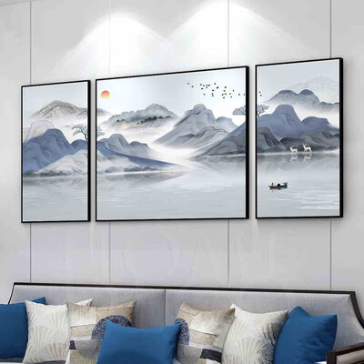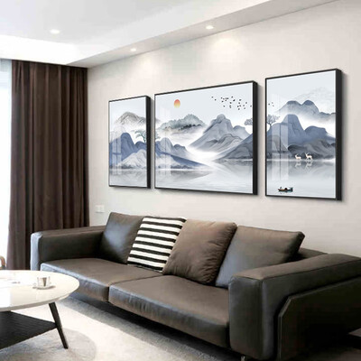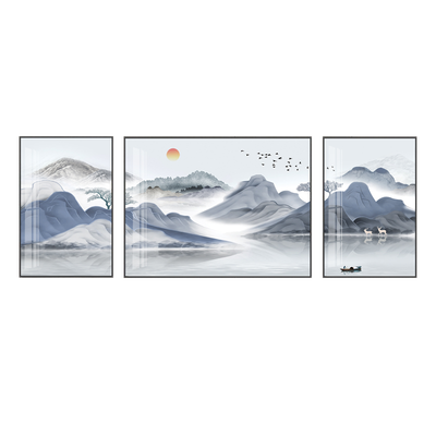 将山水美景用三联画的形式呈现,彰显独特北欧风设计,提升家居格调;高透晶瓷画面,防水易打理,搭配轻奢黑框,简约不失品位。