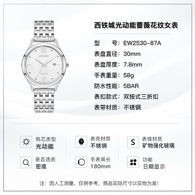 表盘使用蔷薇花纹作为装饰,搭配简约的罗马字符和太妃针,更显优雅有气场。采用矿物强化玻璃镜面,透明度高抗压强度高。