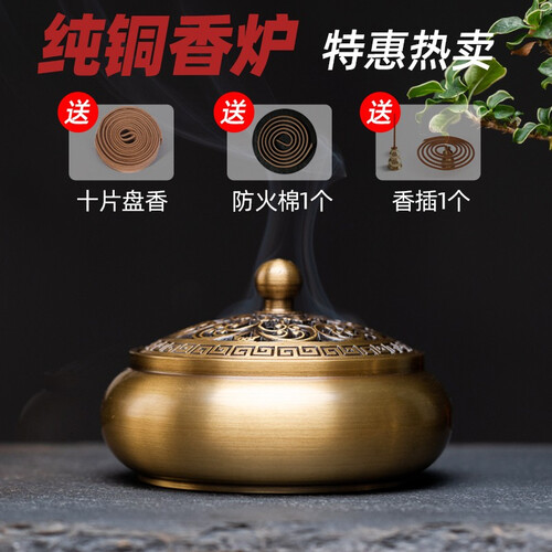 颖香 平底设计纯铜香炉