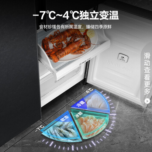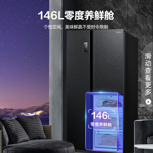556大容量设计,多层抽屉,提高空间利用率,可根据食物属性分类存放。电脑控温系统实现多种循环调温,老人在家也可上手操作。