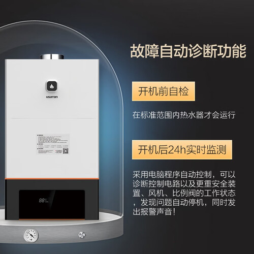 开机自动检测,确保零故障运行,实时监控运行状态,如遇异常会及时报警并关机。具备大水量,沐浴更畅快。