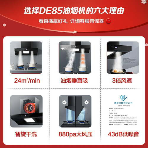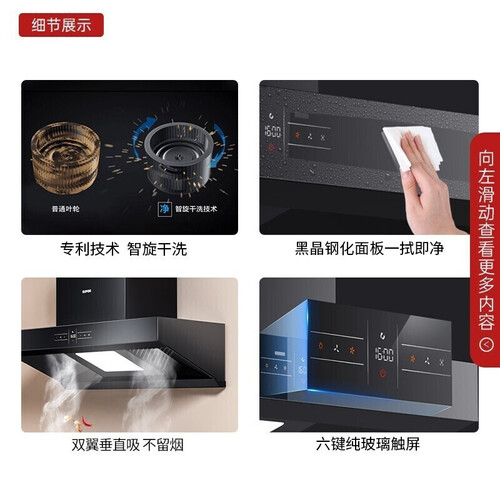 双进风口设计,能准确对准双灶台,直吸油烟不拐弯,防止油烟升腾逃窜。低音降噪设计,为家人提供舒适静谧的做饭环境。
