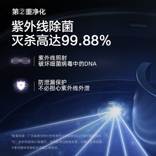 采用紫外线除菌技术,杀菌率高,避免对人体产生伤害。内置银离子抑菌水箱,有效抑制细菌滋生。采用贯流导雾管结构,出雾更迅速。