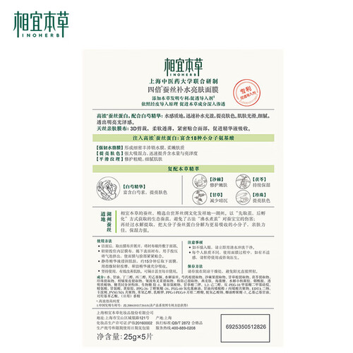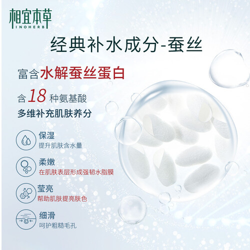 经典蚕丝成分,能够让肌肤一次性喝饱水,充分补充所失水分。富含多种草本配方,能够滋润肌肤,给皮肤提亮肤色。
