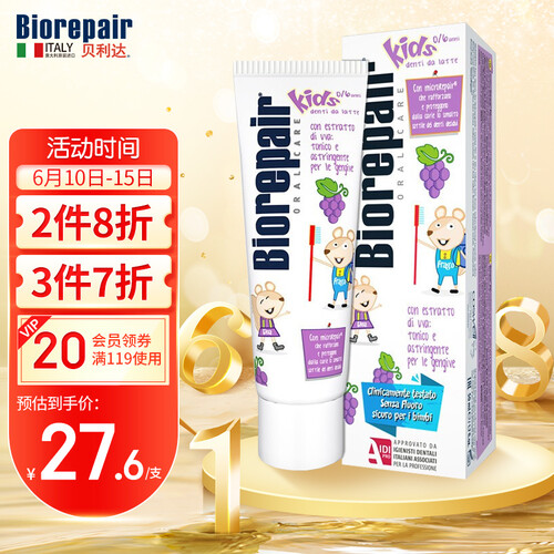 专为儿童设计,不含SLS发泡剂,宝宝吞咽牙膏也不用担心。健康成分不含氟,从乳牙开始修复牙釉质,让宝宝从小拥有坚固牙齿。