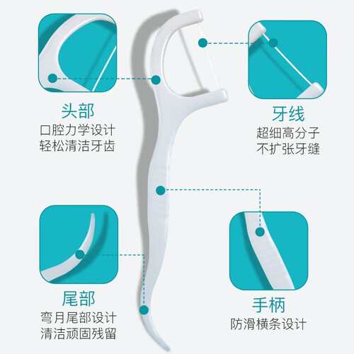 添加高分子量聚乙烯纤维成分,令牙线更加细滑轻盈,从而深入清洁不伤牙龈。尾部采用月牙设计,可帮助清洁食物残留,清洁更方便。