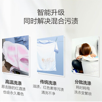 顽渍净技术,分段洁净污渍,一次去除25种顽渍,洗衣更洁净。搭载BLDC变频电机,强劲洁净力,洗涤衣物更安全。