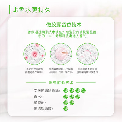 采用纳米微胶囊混色珠技术,浓缩配方用量更节省;肌肤与衣物的每一次摩擦,犹如泡泡般爆破,不断释放清新香气,留香更持久。
