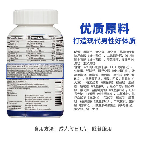 采用科学配方,添加多种矿物质,补充日常摄入,适合男性人群。结合200粒大包装,可食用时间更长久,无需频繁进行购买。