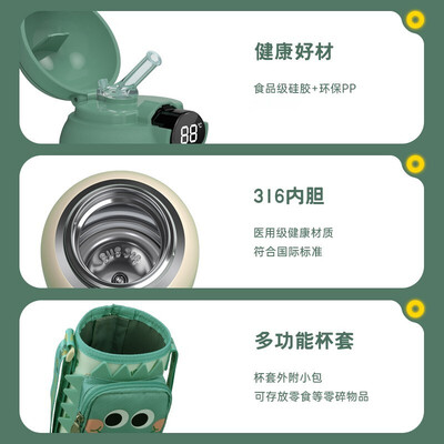 内含智能芯片,实时知晓杯中水温的动态,不需要家长试温更加卫生方便。采用母婴级316内胆,有效减少细菌滋生,耐腐蚀性更强,也更健康。