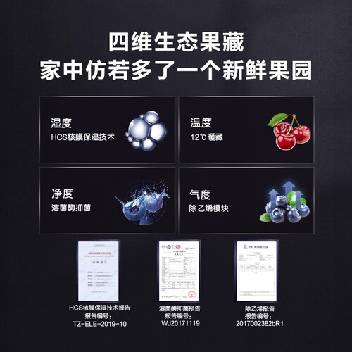 采用四重养鲜技术,保持冷柜内的湿度,让水果和蔬菜的水分不流失。可支持连接手机APP,直接远程进行各项功能的操作。