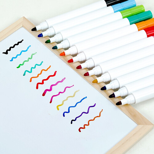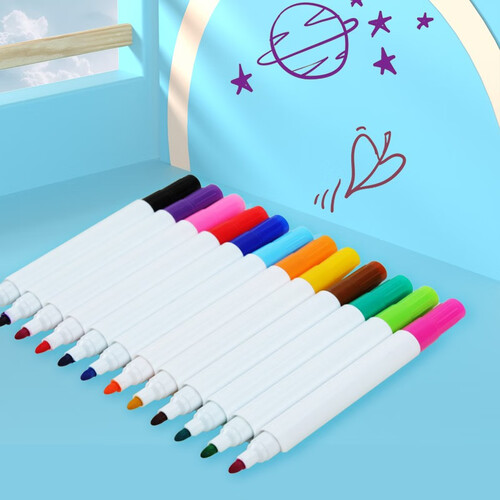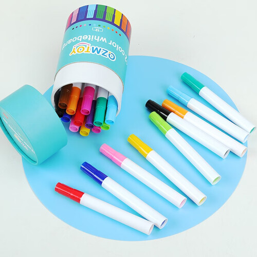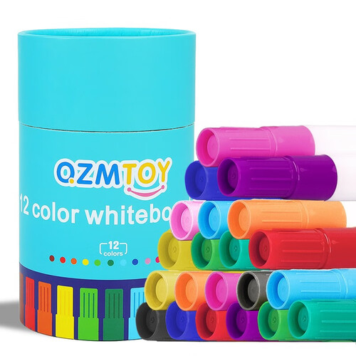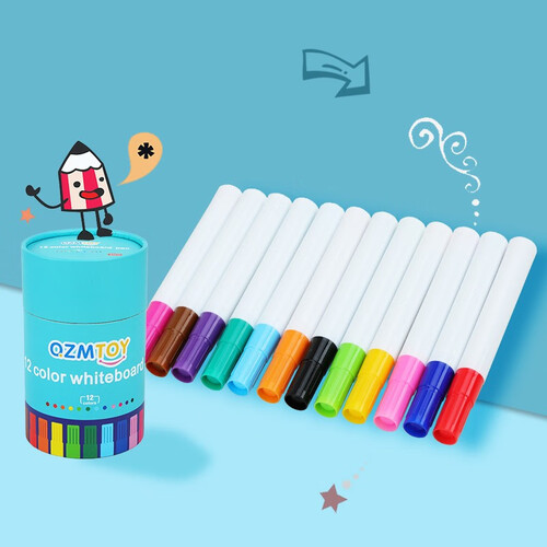 圆柱体筒装的设计,具有12色24支彩笔,可用于白板绘画。纤维笔头的设计,下笔更加顺畅,出墨均匀。
