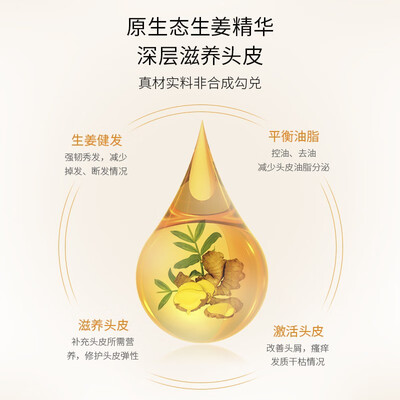 蕴含原生态生姜精华,有效调节水油平衡,减少头皮油脂分泌。现代破壁工艺,低温萃取,减少温度对植物成分的影响,更加滋养头皮。