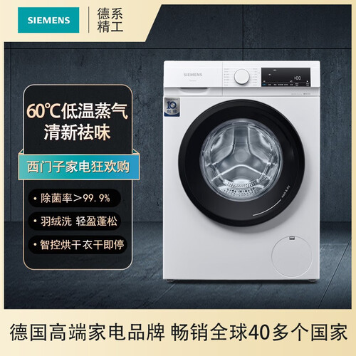 西门子10公斤滚筒洗衣机是一款洗烘一体机,具备高达99%的除菌效果,支持蒸气除味除螨,搭配智能烘干功能,可满足敏感人群的洁净需求。
