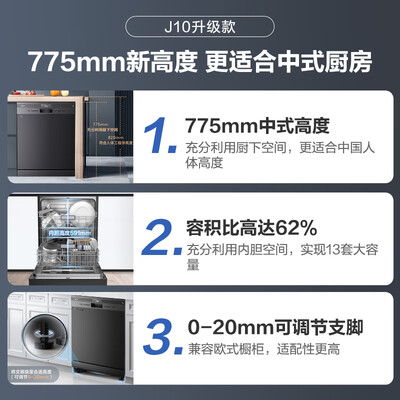 根据国人家庭橱柜高度潜心设计,大小合适,高度契合,省去改造烦恼。拥有14套大容量洗涤功能,大户型也能轻松使用。