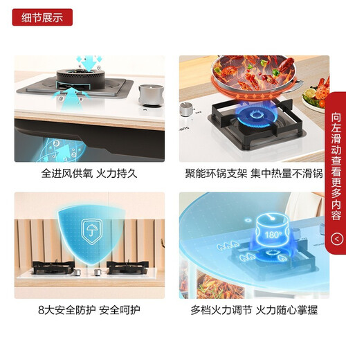 采用全进风补氧的技术,保证气体的充分燃烧,减少能源的浪费。采用方形的锅支架设计,任性翻炒不担心翻锅的危险。