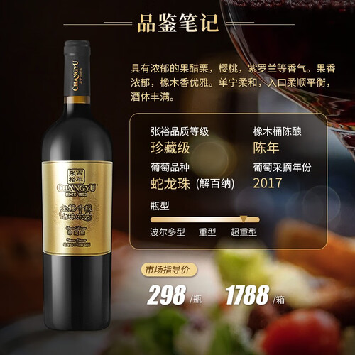 经过严格的酿造工艺,果味浓郁酒体柔顺,单宁细腻,每一口都余味悠长。搭配烧烤、牛排等红肉类以及意大利面等配餐,口感更佳。