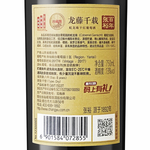 张裕 珍藏级蛇龙珠干红葡萄酒