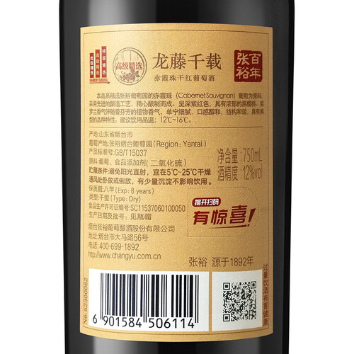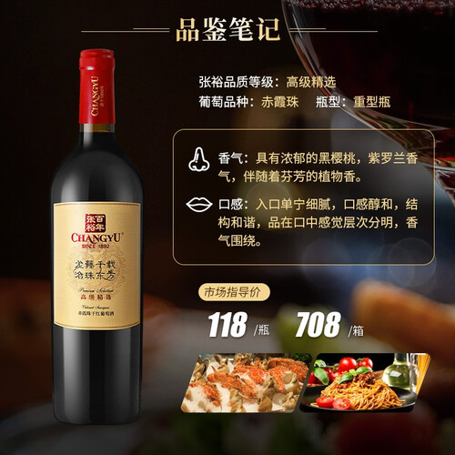 手工精选的酿酒葡萄赤霞珠,搭配先进的酿造工艺,并经大酒窖恒温储藏,品质始终如一。散发着果味浓郁的香气,入口回味较长。