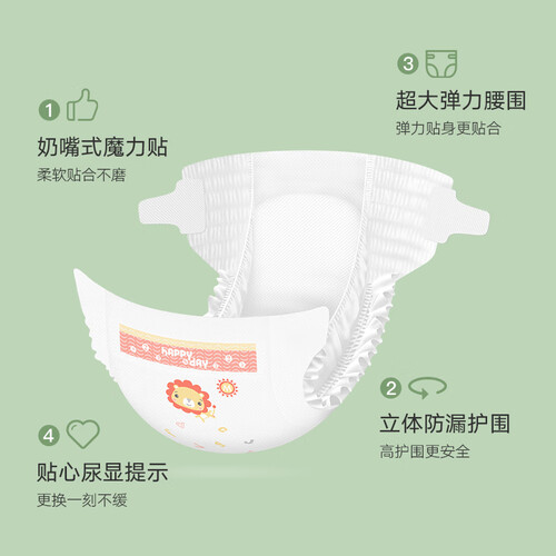 立体防漏护围设计,舒适贴合腰部,宝宝活动自如无负担。贴心的尿显提示,便于更换,带给宝宝舒适的穿着体验。
