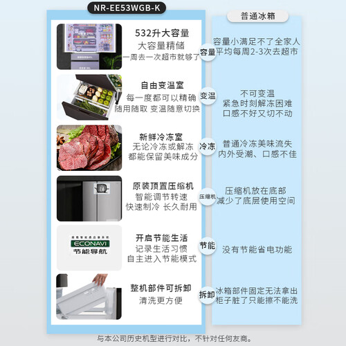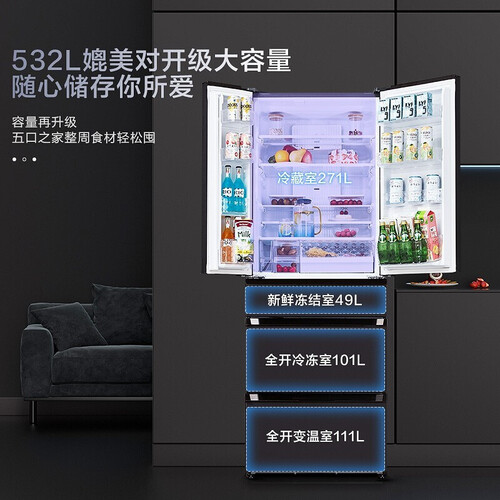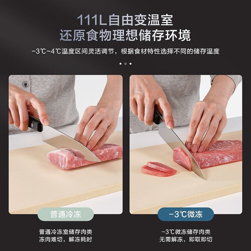 磨砂黑面板设计,美观大气百搭装修,备受居家一族的喜爱。压缩机置顶结构,有效扩大下层空间,轻松存储更多食材。
