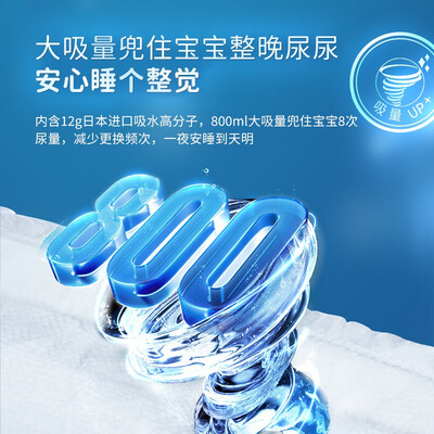 内里采用大吸量双芯体,牢牢锁住尿液,减少对肌肤刺激。加上0.2cm的超薄设计,柔软亲肤贴合宝宝身体,不会产生负担感。