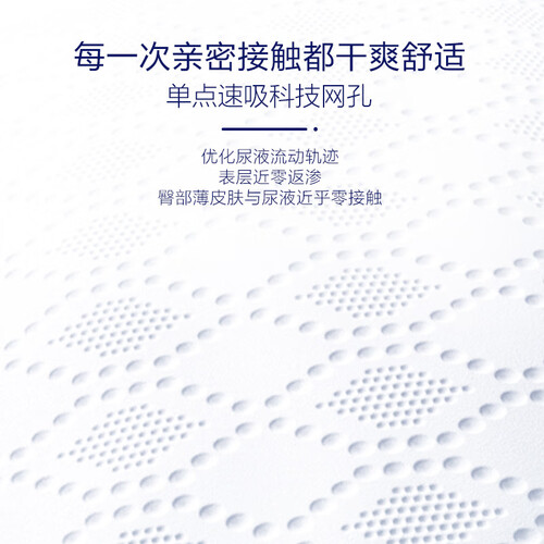 拥有巨能吸量功能,减少更换次数,实惠又安心,妈妈更轻松。安睡悬浮防漏系统,让宝宝夜晚睡得更香甜。