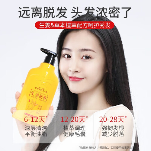添加了生姜精华,能够提升头皮肌肤的强韧度,抵御外界损伤,同时改善脱发问题,帮助刺激头发生长,更加浓密。