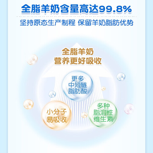专业定制的羊奶配方,不容易造成过敏问题,敏感人群也可以放心饮用,小体积的脂肪球,不会造成肠道负担,吸收更轻松。